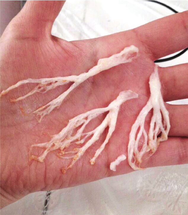 Plastic Bronchitis (also known as bronchitis fibroplastica) is a rare disease that involves the formation of obstructive “casts” in the bronchial tubes. These casts cause partial or total airway obstruction leading to difficulty breathing. Patients with this disease appear to have an object caught in the airway. Doctors often diagnose the disease when a patient coughs up one of the bronchitis fibroplastic "casts", though this disease can also be diagnosed via bronchoscopy too. Though plastic bronchitis is considered “uncommon”, scientists also acknowledge that it is underdiagnosed and that more patients may have this disease than conventional medicine realizes.