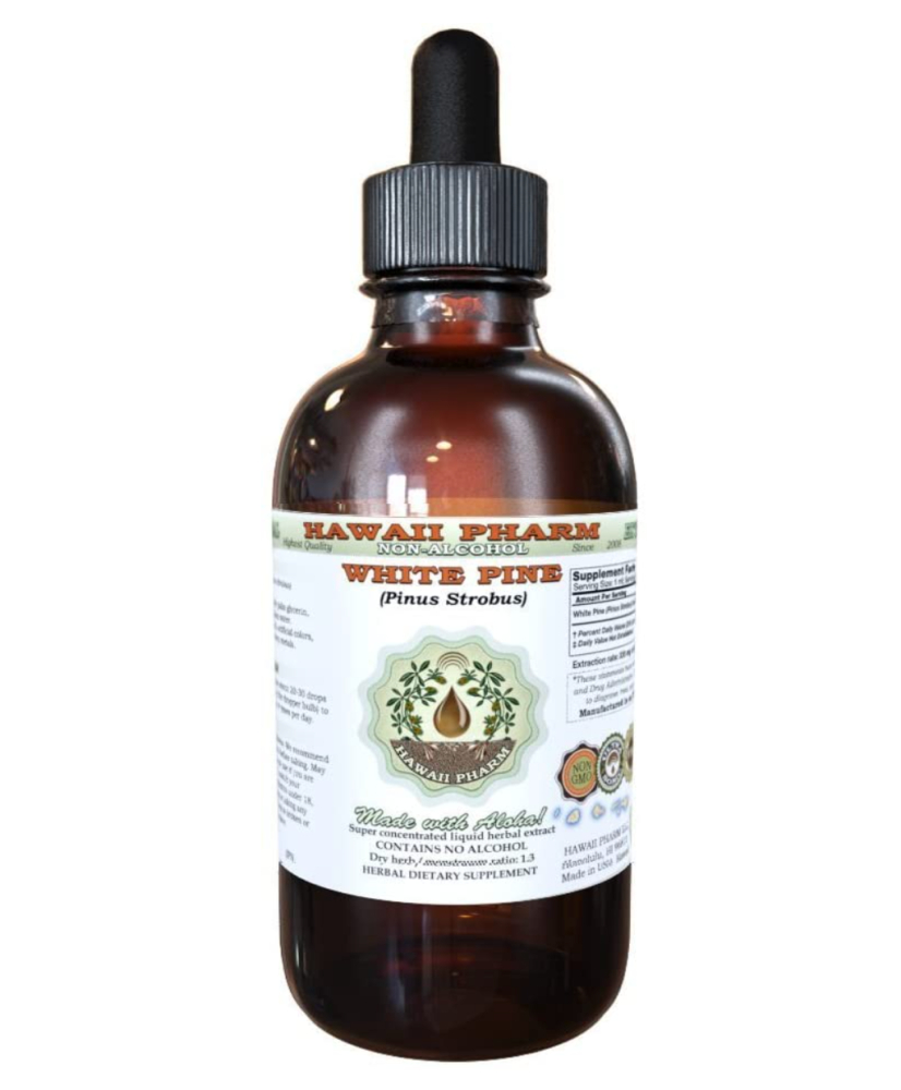 White pine has also been known to lower blood pressure, treat allergies, and relieve depression, and has antifungal, antiviral, and antibacterial qualities. It may both heal as well as prevent infection with the COVID-19 virus. Star anise is another plant that has a similar and supportive function as white pine. This white pine tincture from Hawaii Pharm may be taken internally Take approximately 20-30 drops of this tincture in a glass of water daily. White pine may also be taken as a tea made from fresh pine needles. This white pine tincture should not be taken by women who are pregnant as it may cause miscarriage. Women who are breastfeeding should use caution because research is limited.